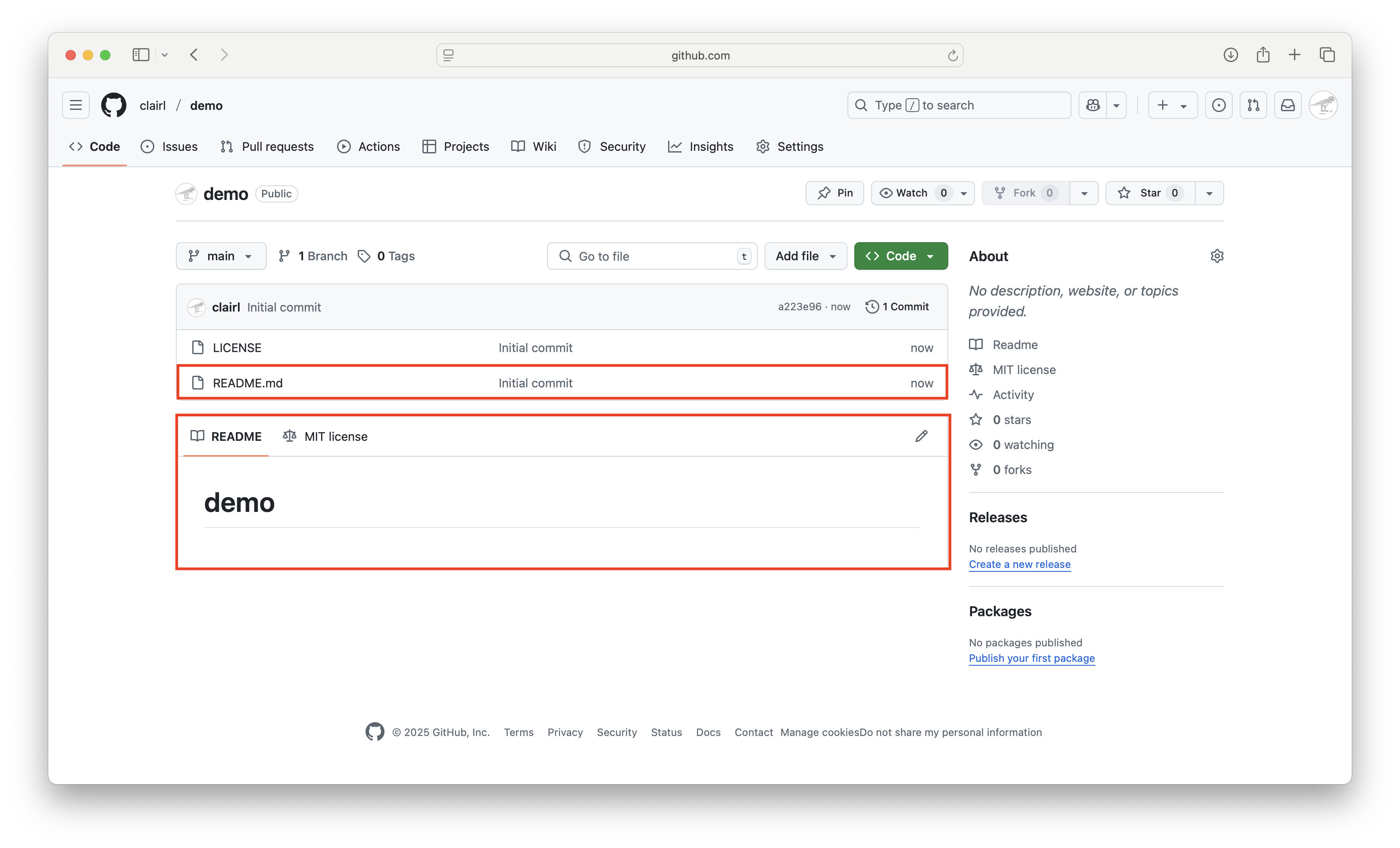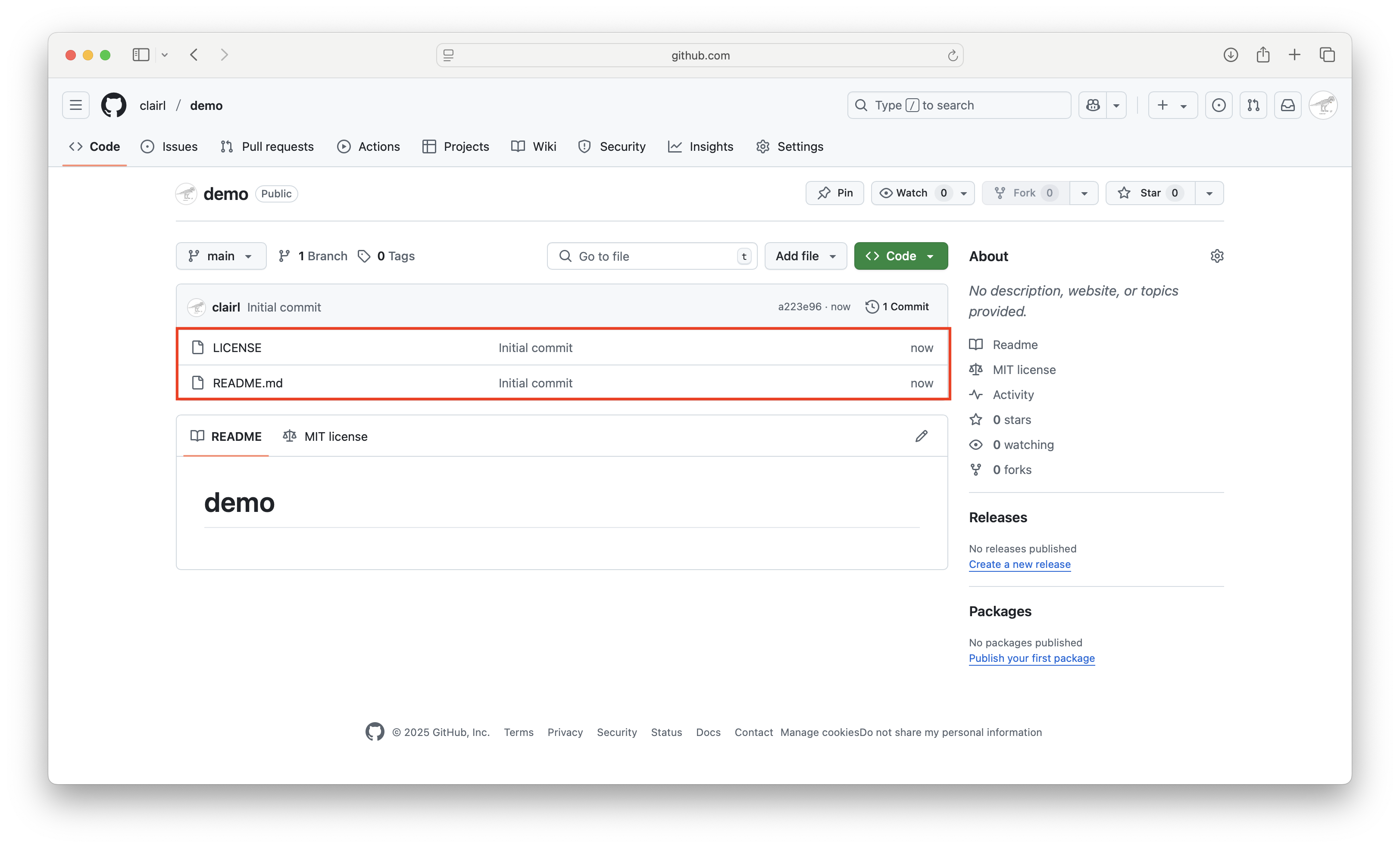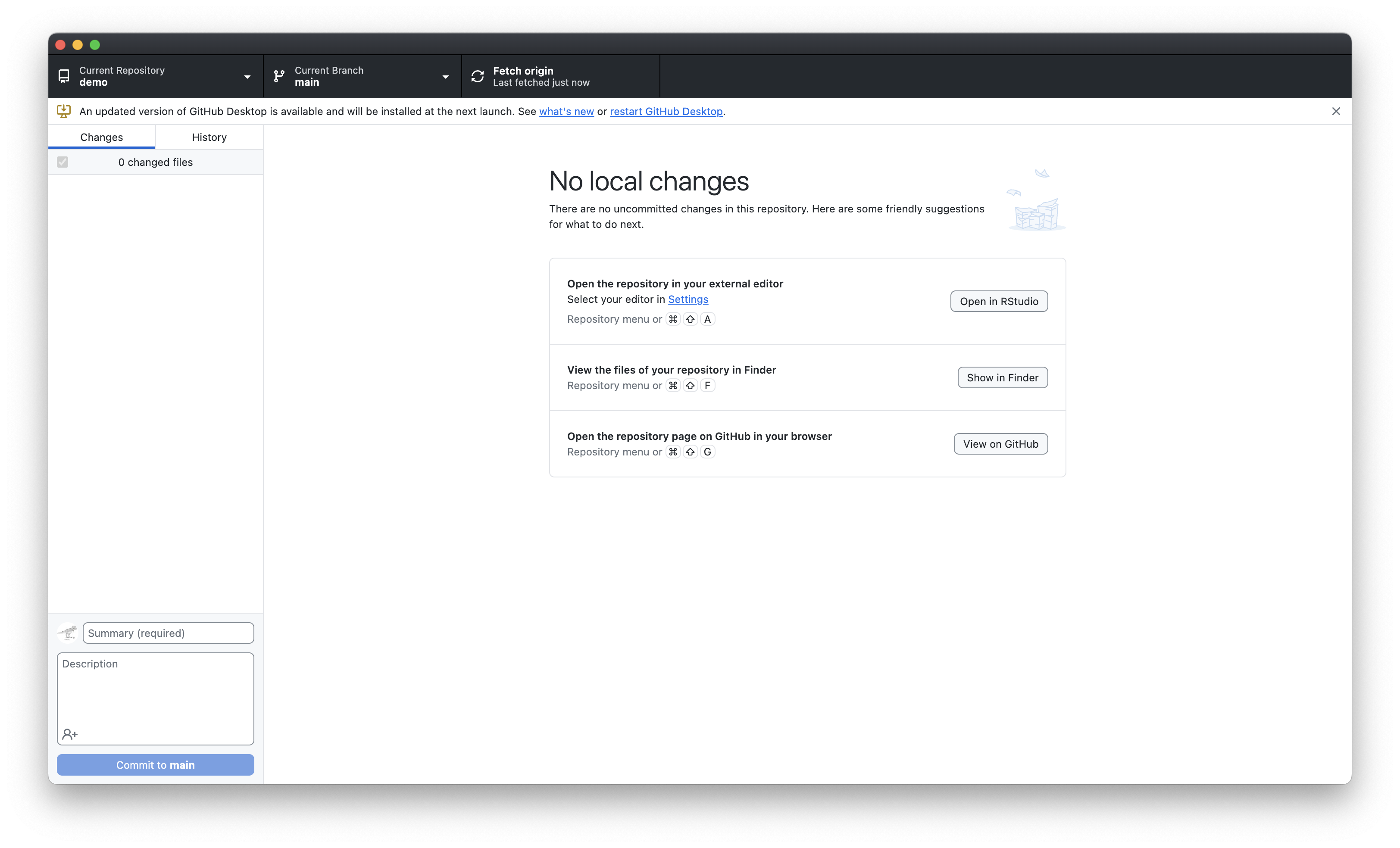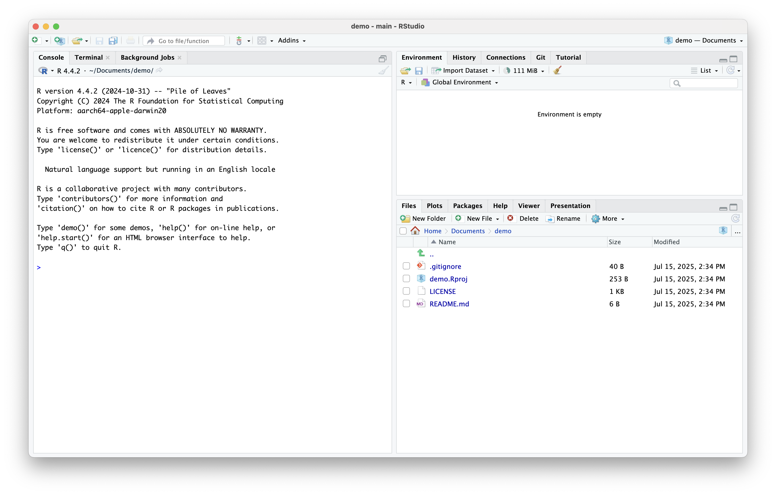 main branch.gitignore and demo.Rproj.gitignore files are special files where we include a list of files we want to exclude from our GitHub repository