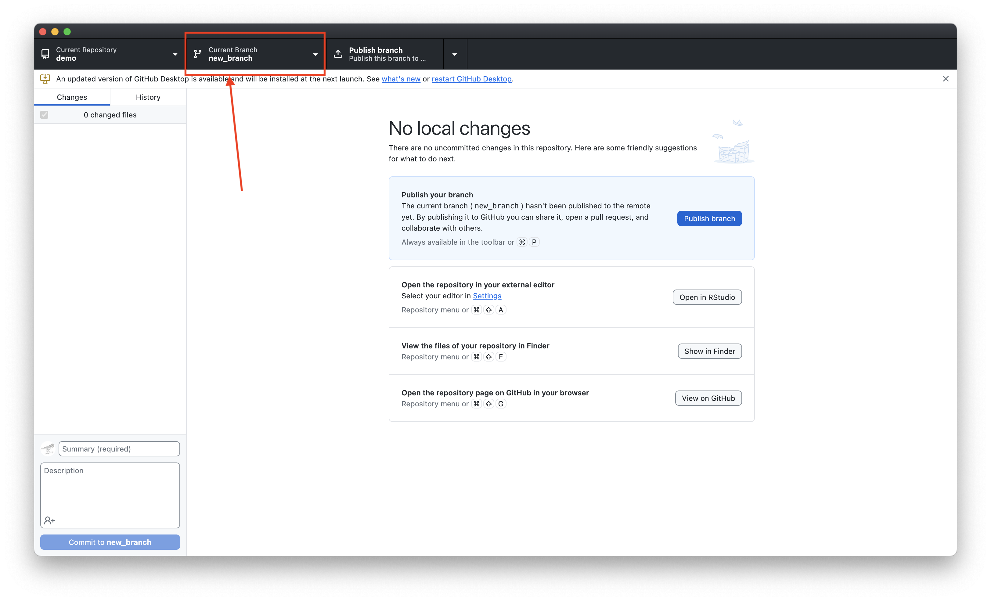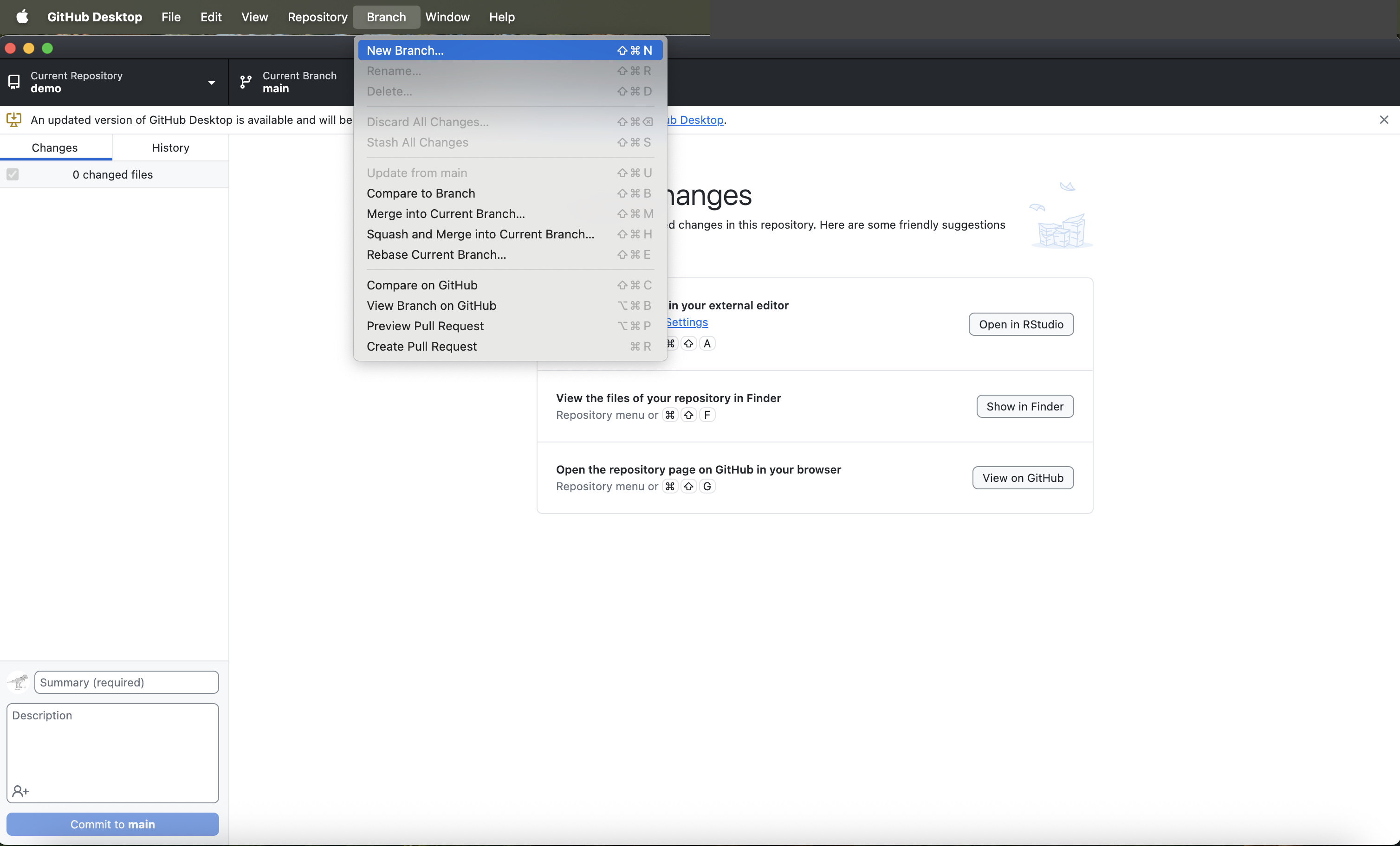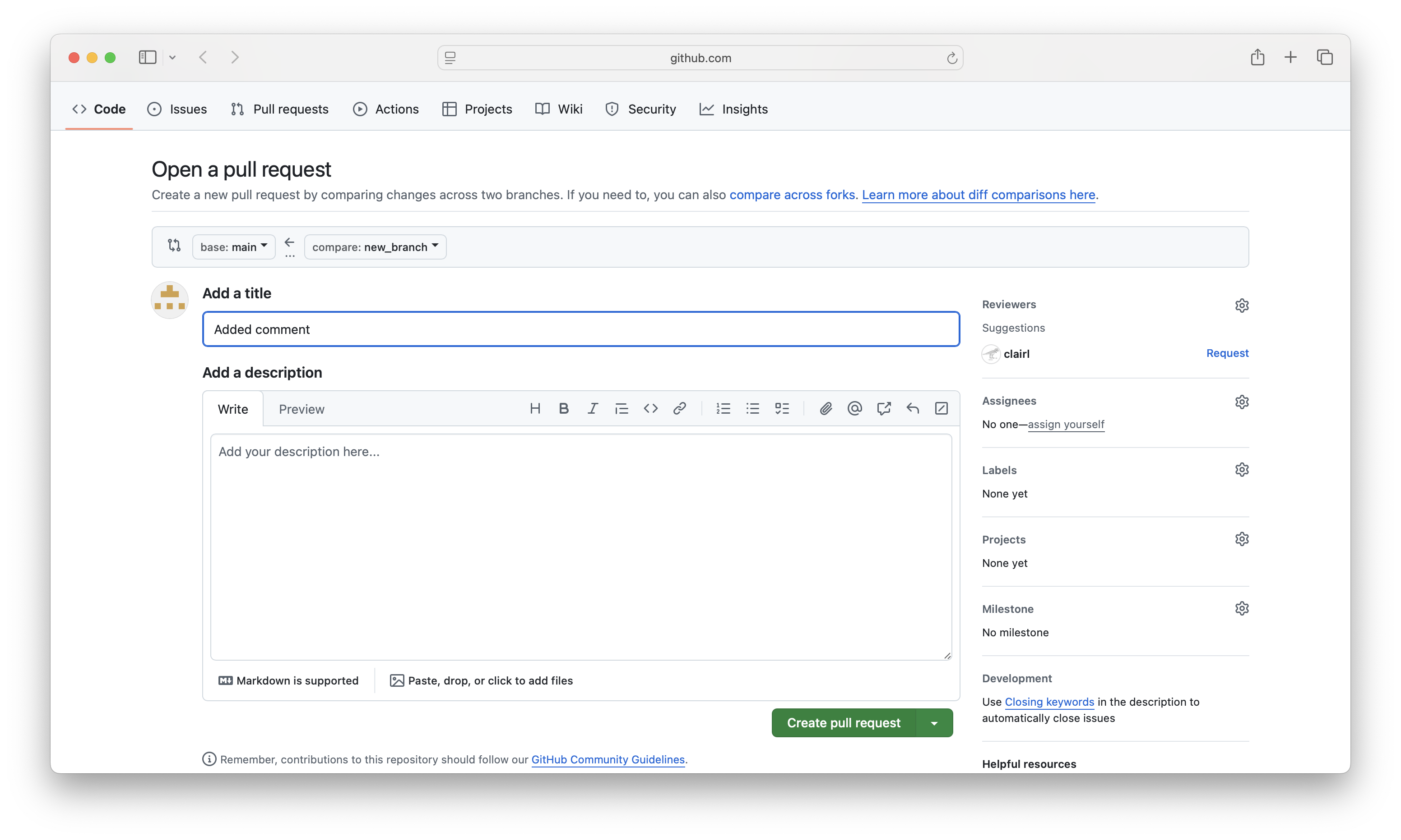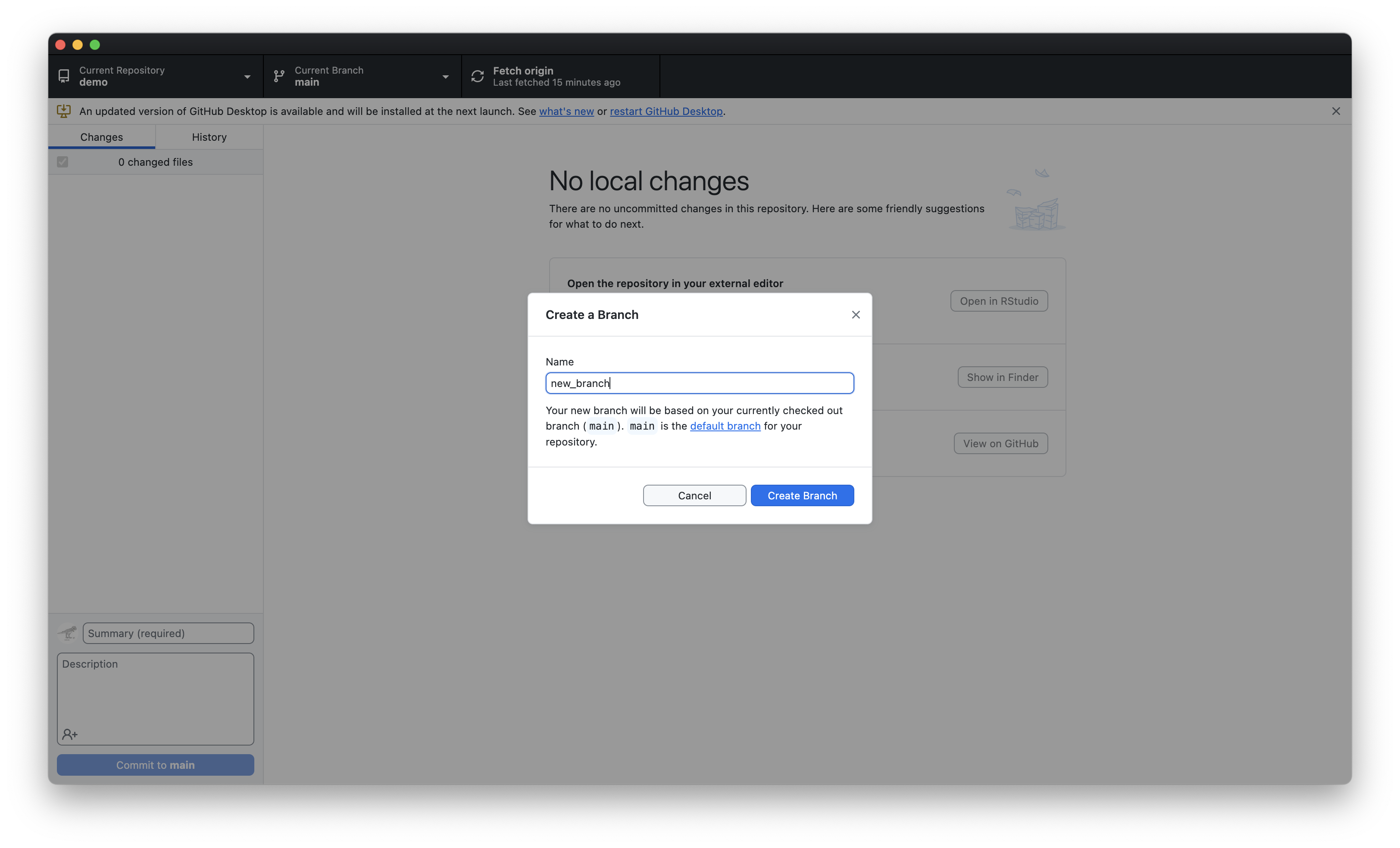 mainmain branchnew_branch and click Create BranchWe can now edit files without altering the main branch