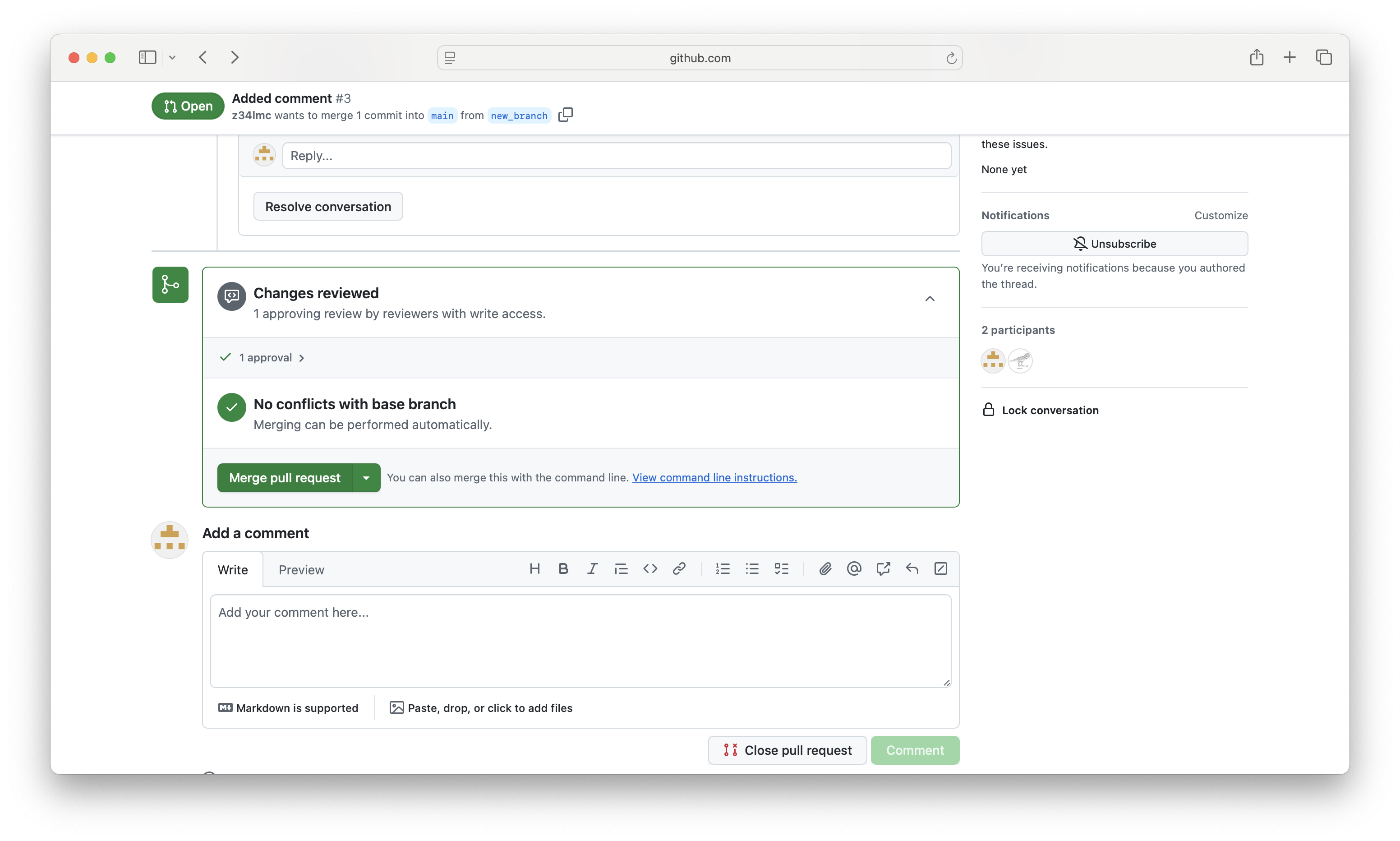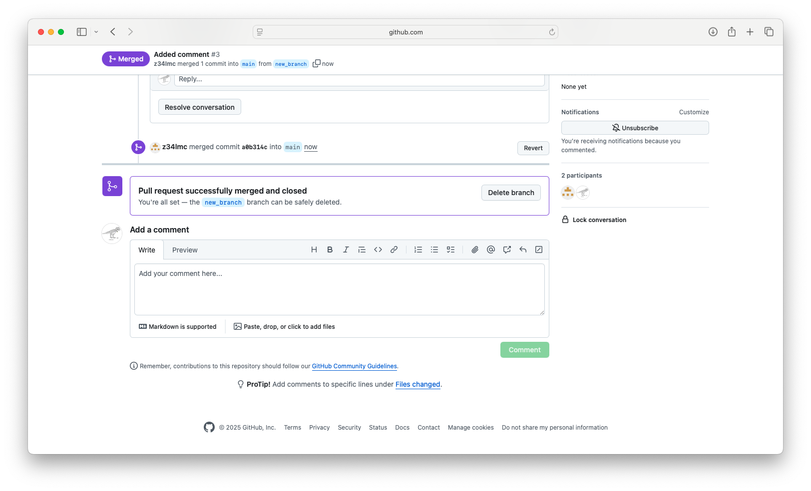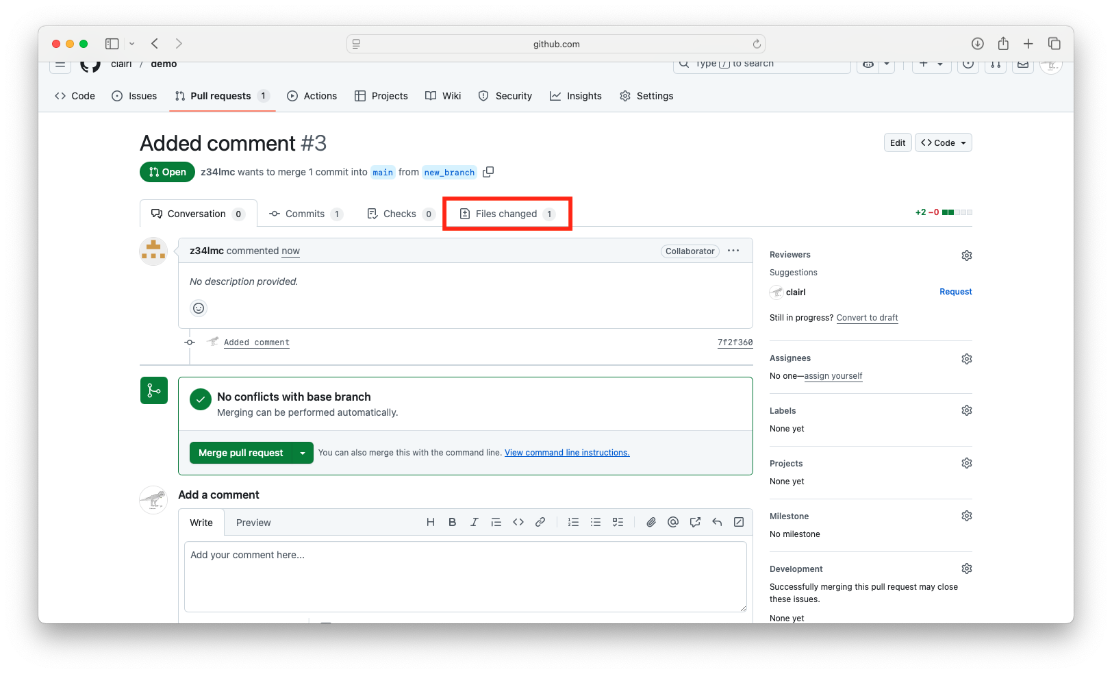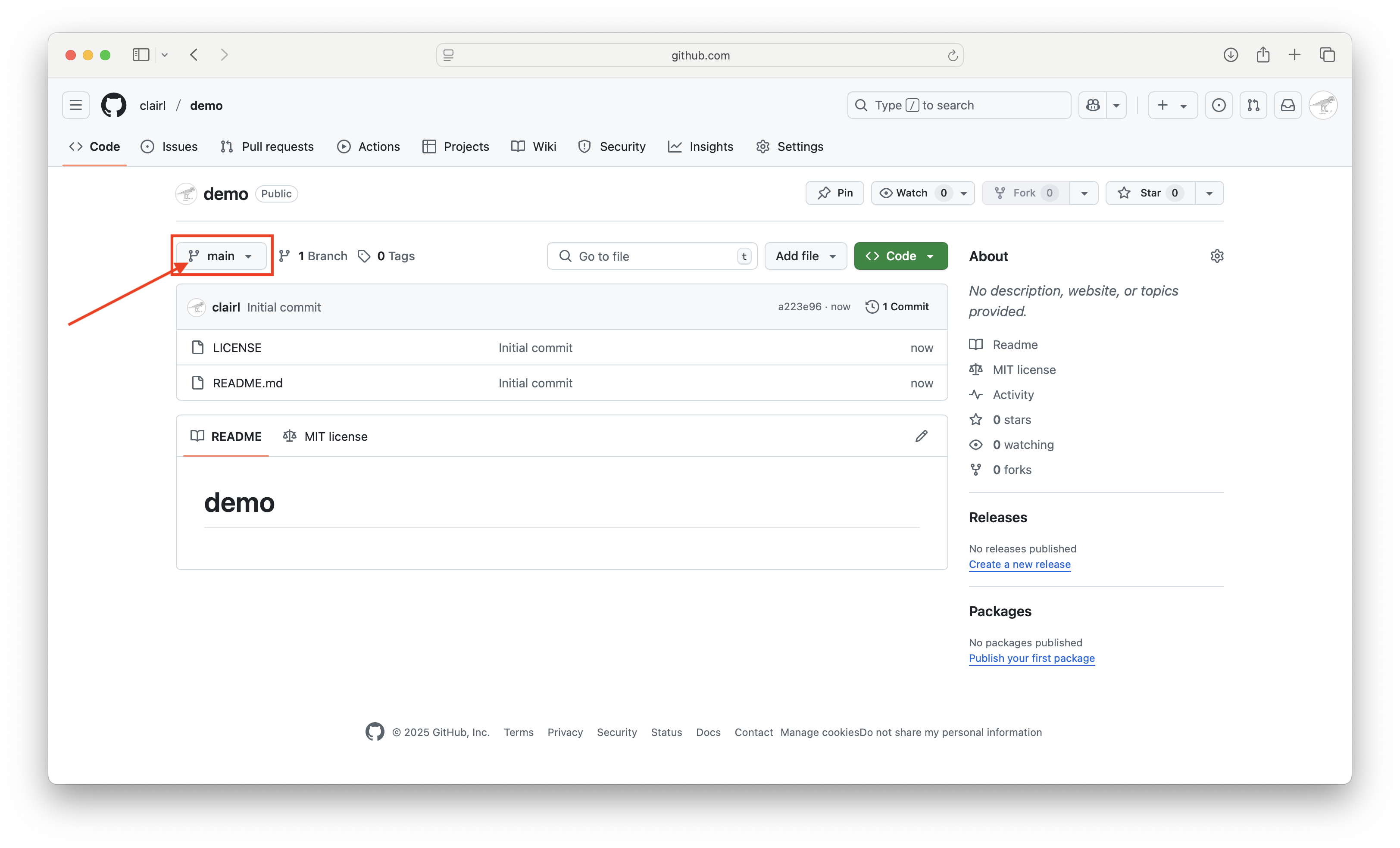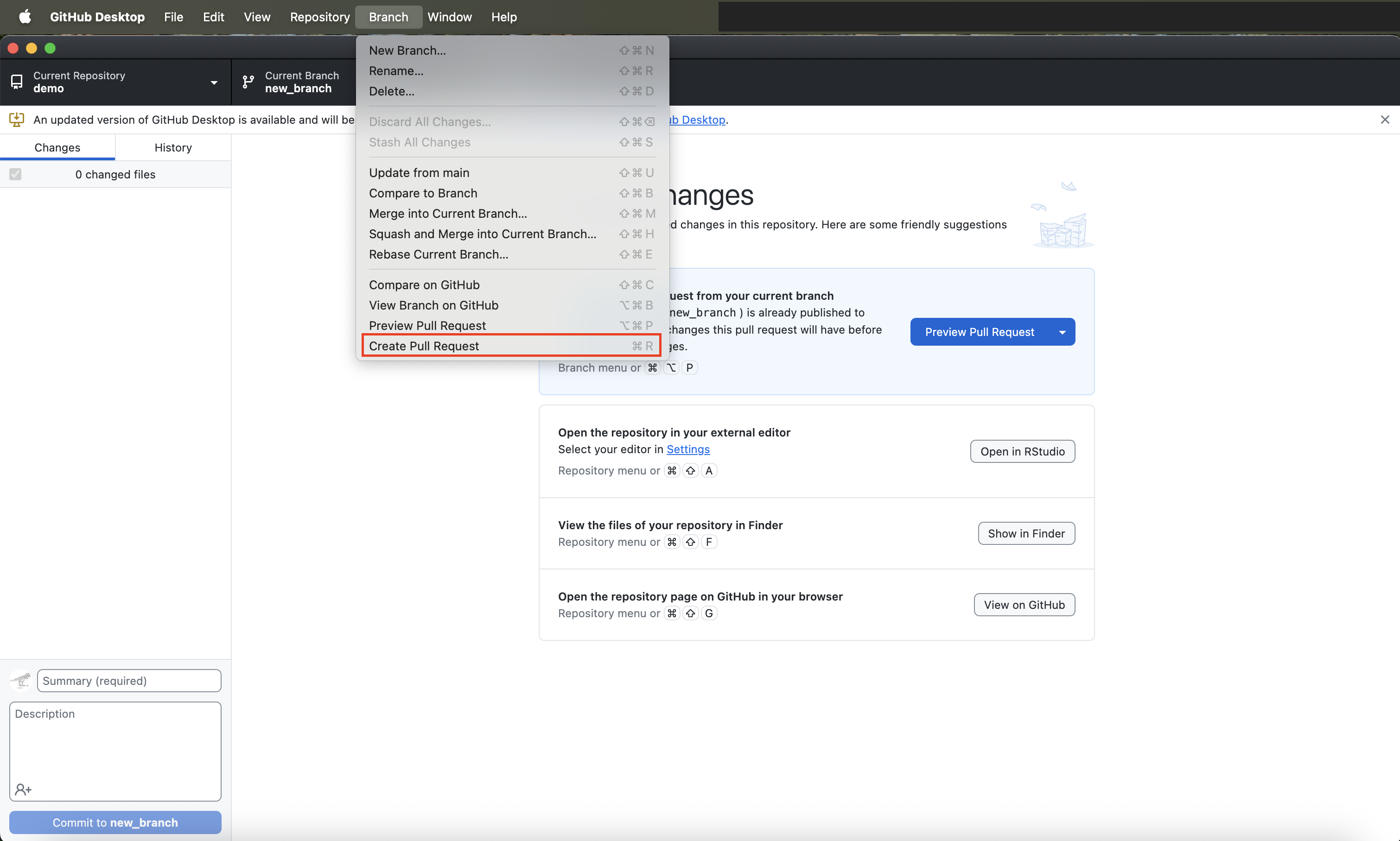mainmain branchnew_branch and click Create BranchWe can now edit files without altering the main branch