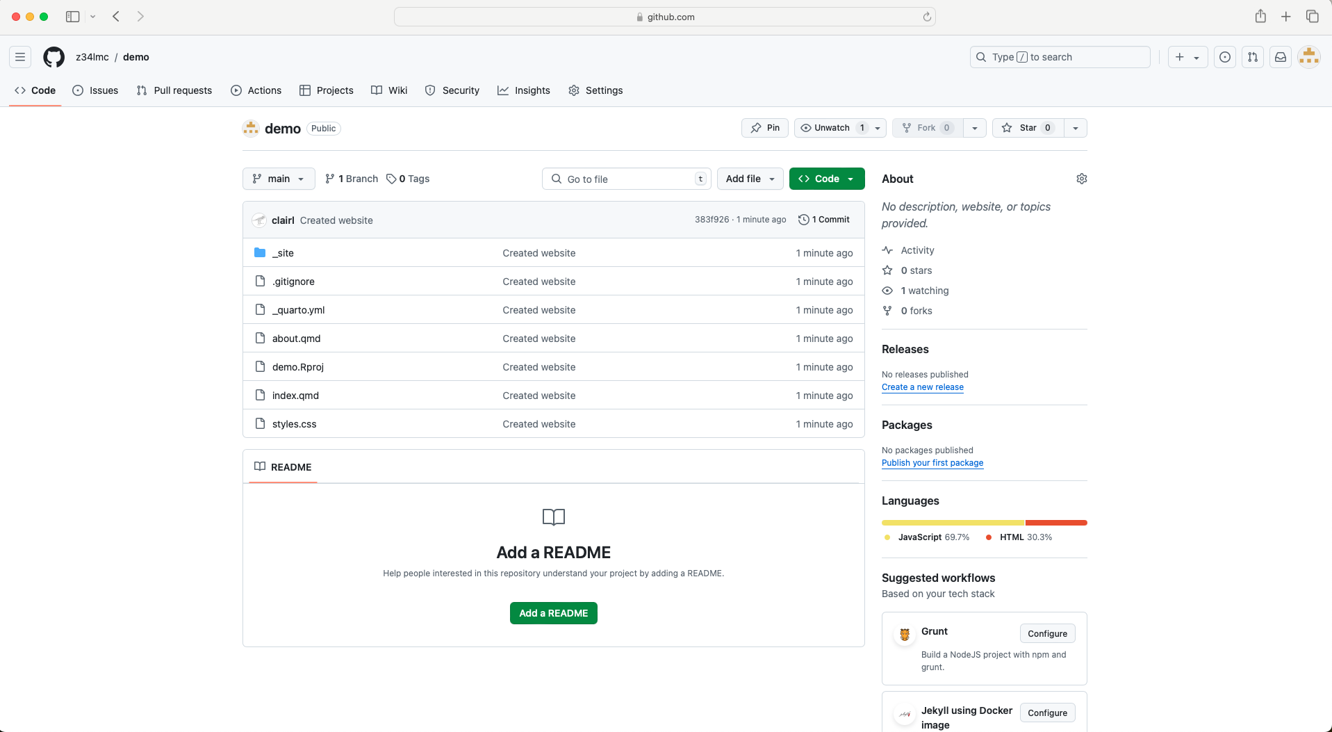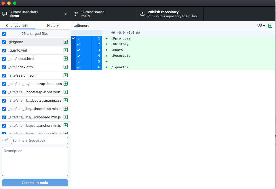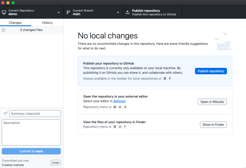 Before we can publish our website, we need to connect our R project to a GitHub repository